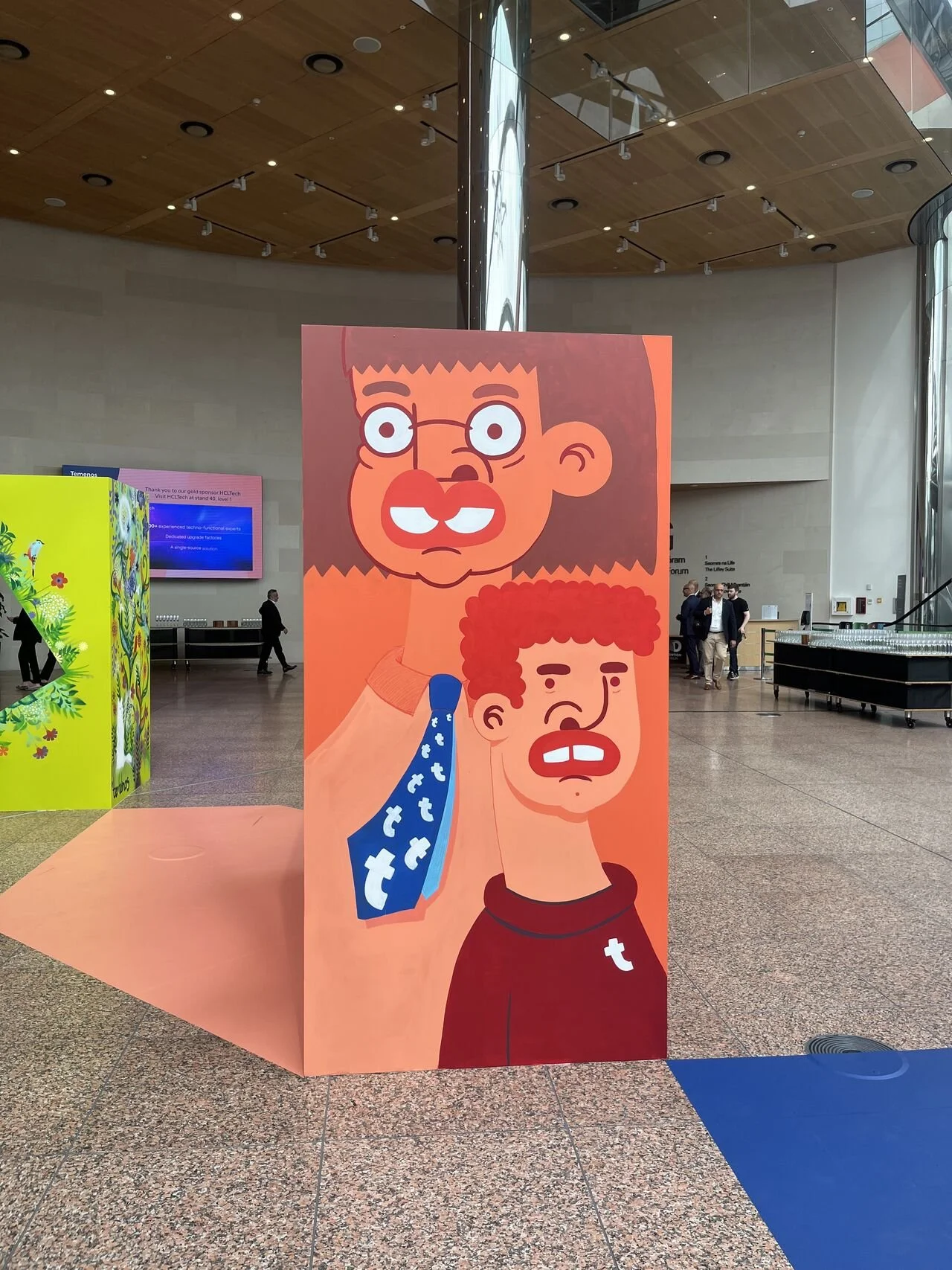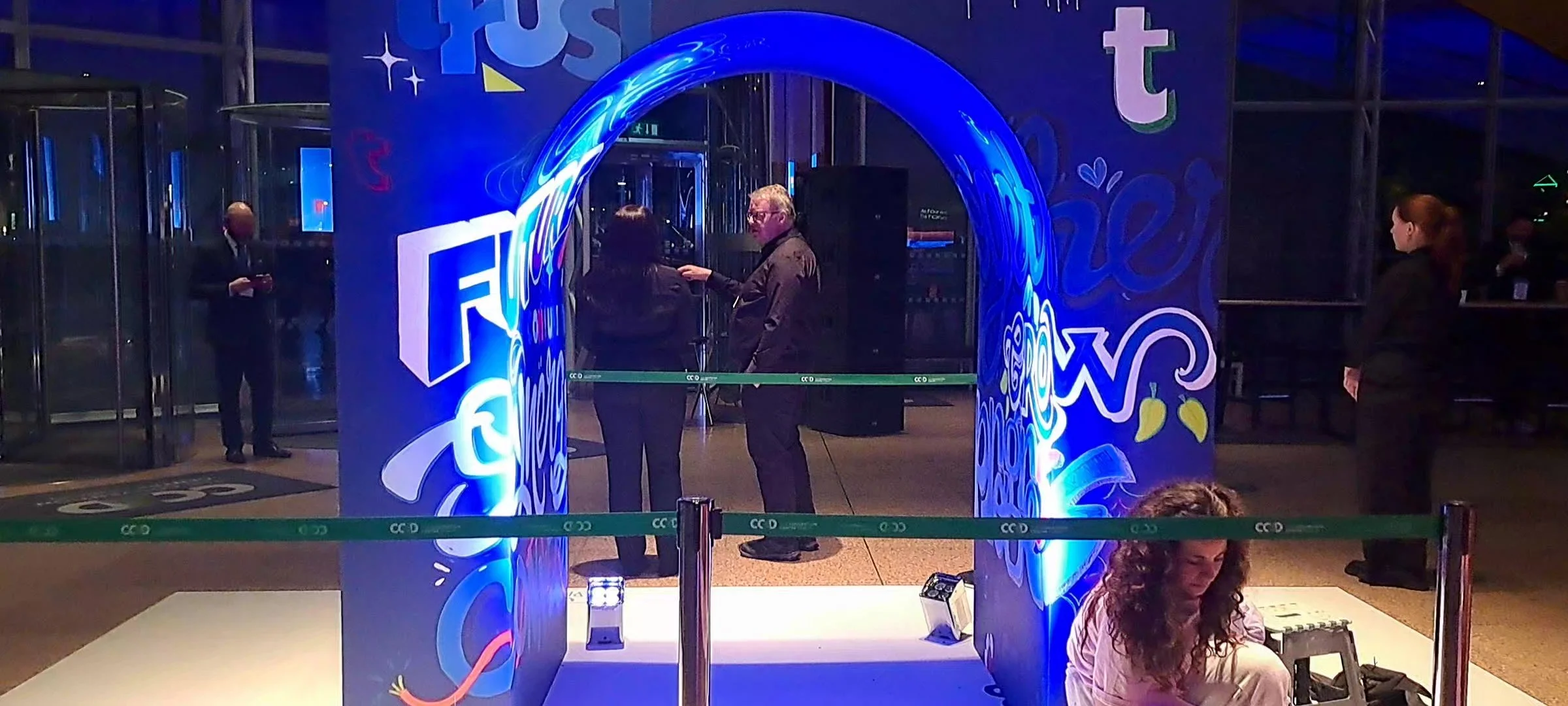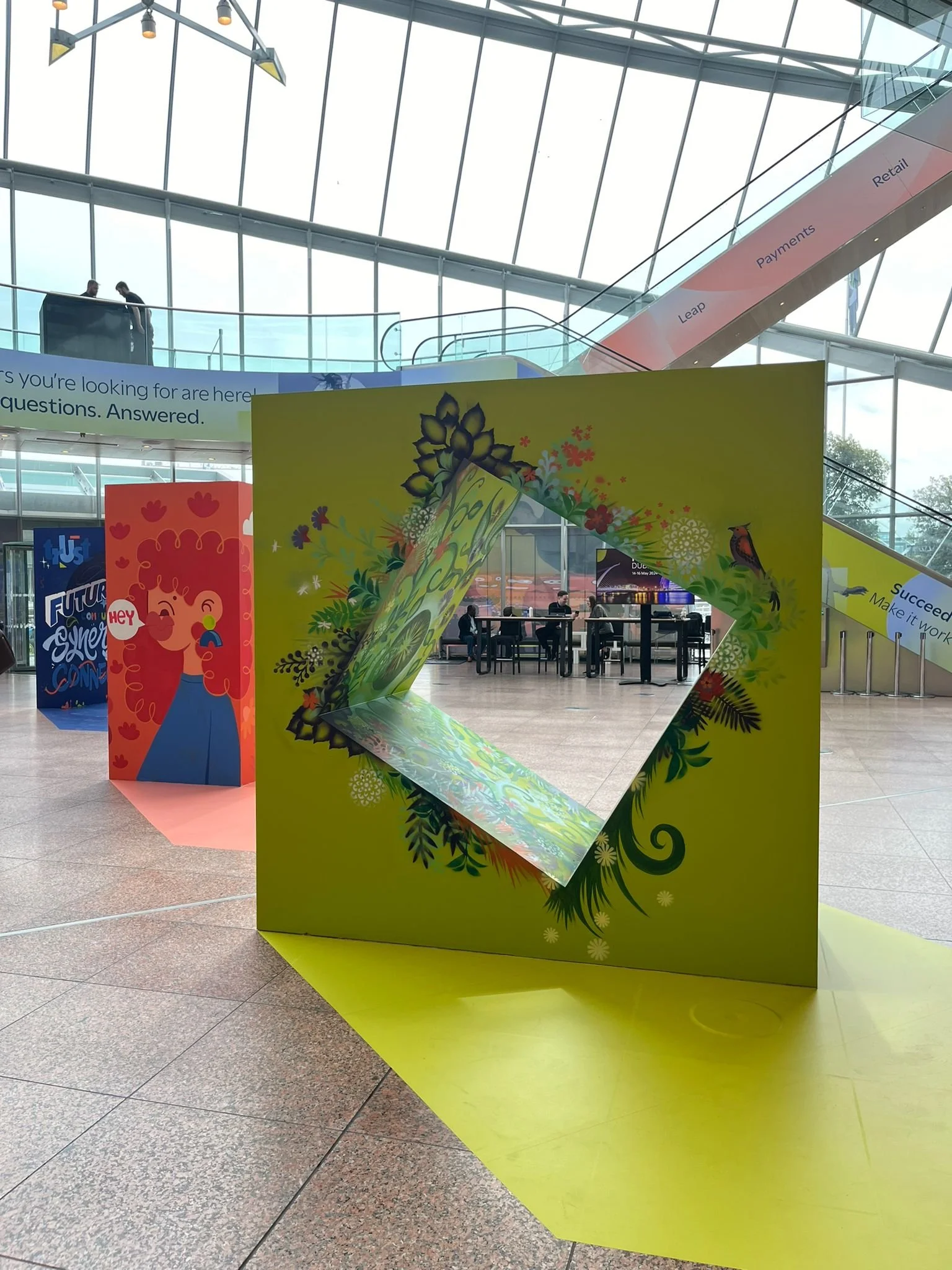 This live painting project was created as part of the Temenos Community Forum, a major global banking technology conference exploring innovation across SaaS, cloud, AI and digital finance. Working in collaboration with Ivory Worldwide, we created a series of large-scale installation pieces positioned in the main entrance foyer, a busy, high-energy space I’d only ever experienced before as part of the crowd.
