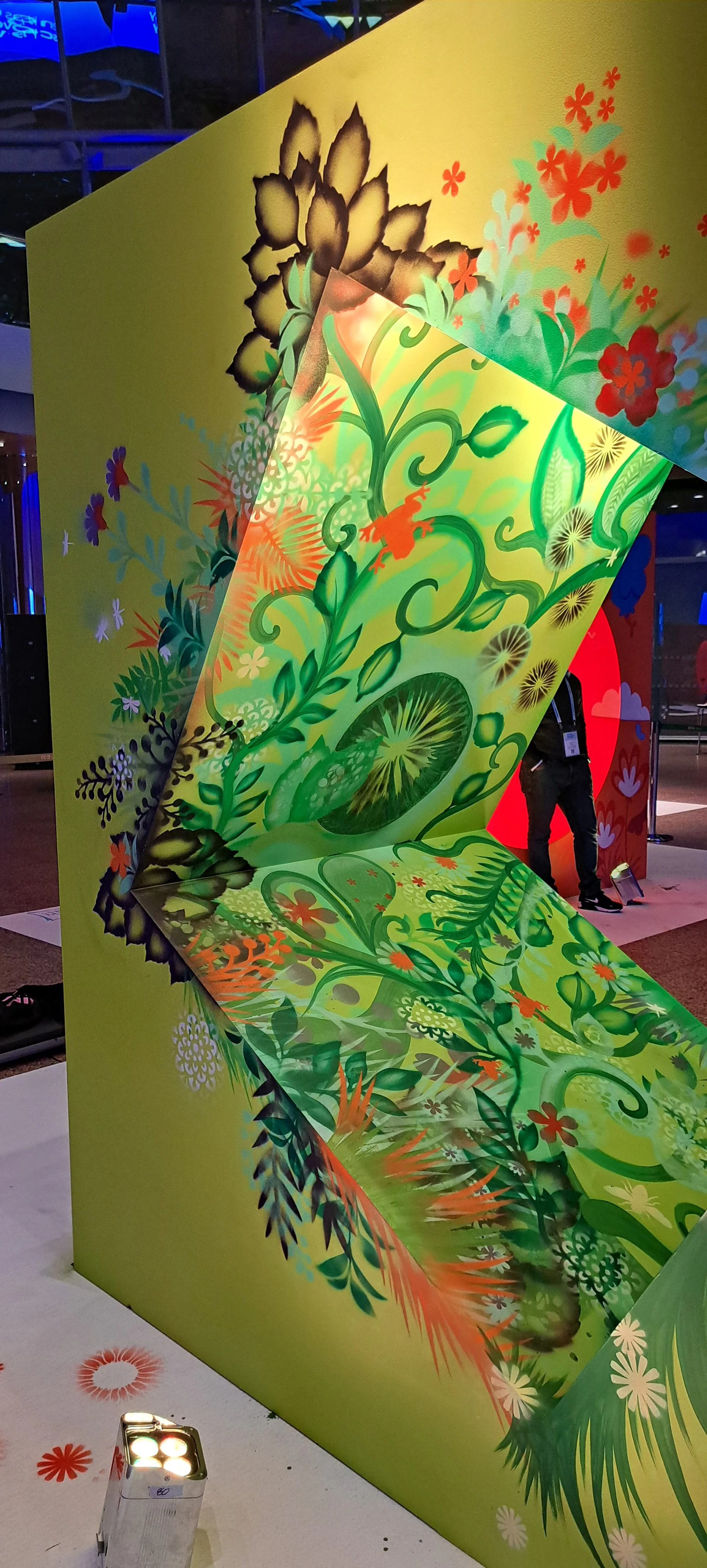This live painting project formed part of the wider evening experience for the Temenos Community Forum, a concept built around “Temenos City,” transforming the Convention Centre into a kind of night-time street festival.